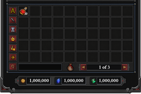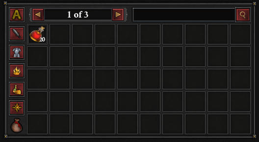 They say a picture is worth a thousand words, so I replaced all of the filter buttons text with images. It’s a nice change, and frees up some more space. However, if I have a lot of things in my inventory, it’s a bit inconvenient to have to use the page selector at the bottom; the most used bits of the UI should be placed closer together to minimize the amount of moving around a player has to do. Which leads us to version #3.